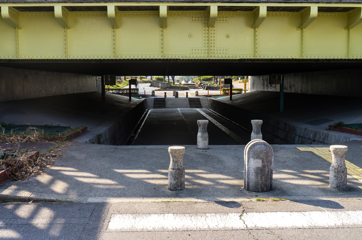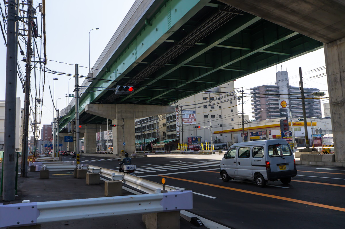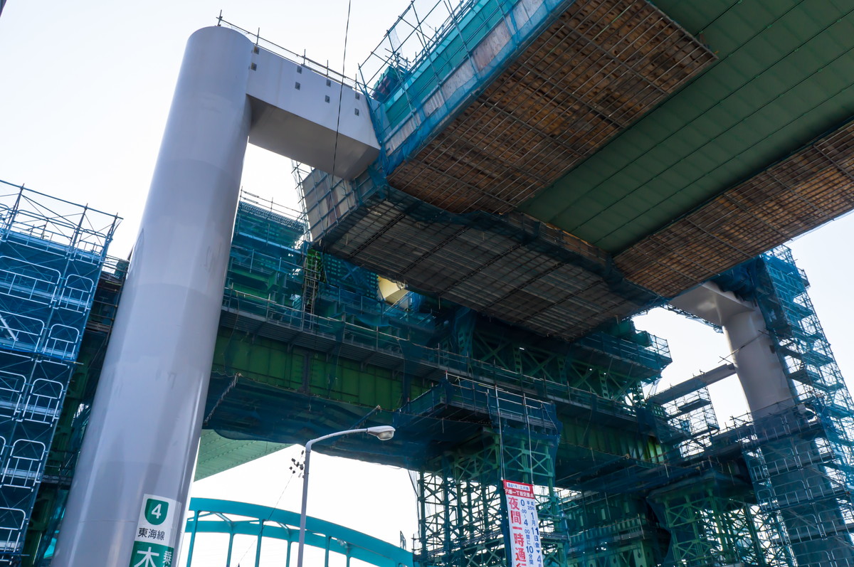 見上げれば高速道路の建設中。