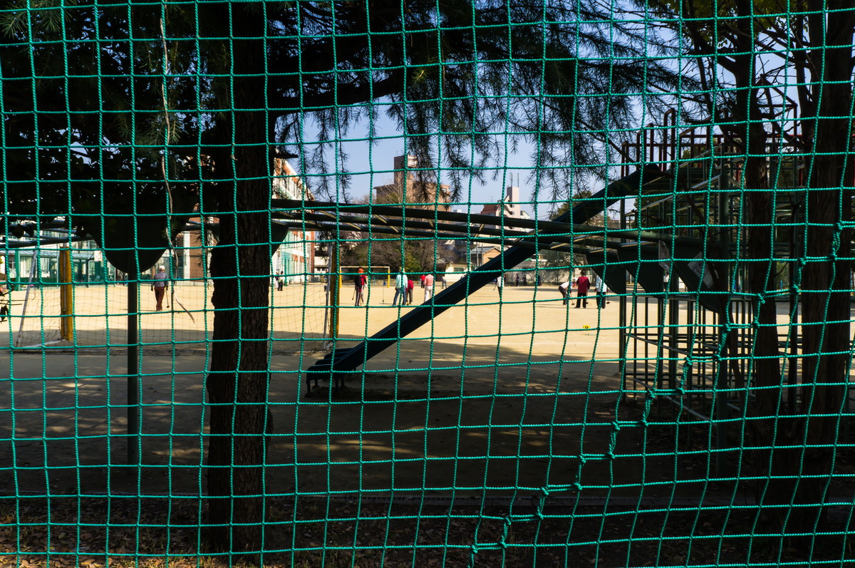学校では老人たちがゲートボールに夢中だ。