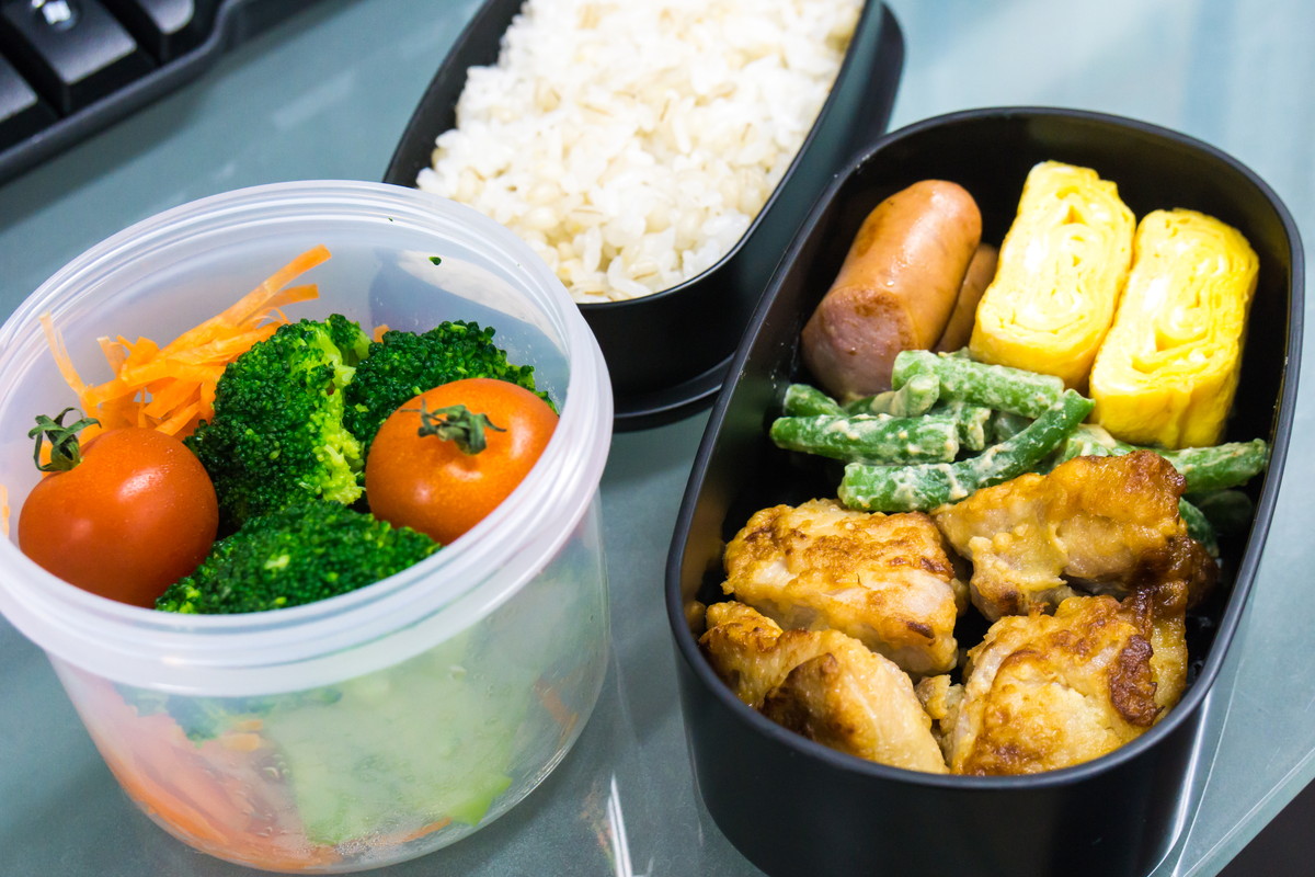 副菜は「いんげんのゴマ和え」「卵焼き」「ソーセージ」。